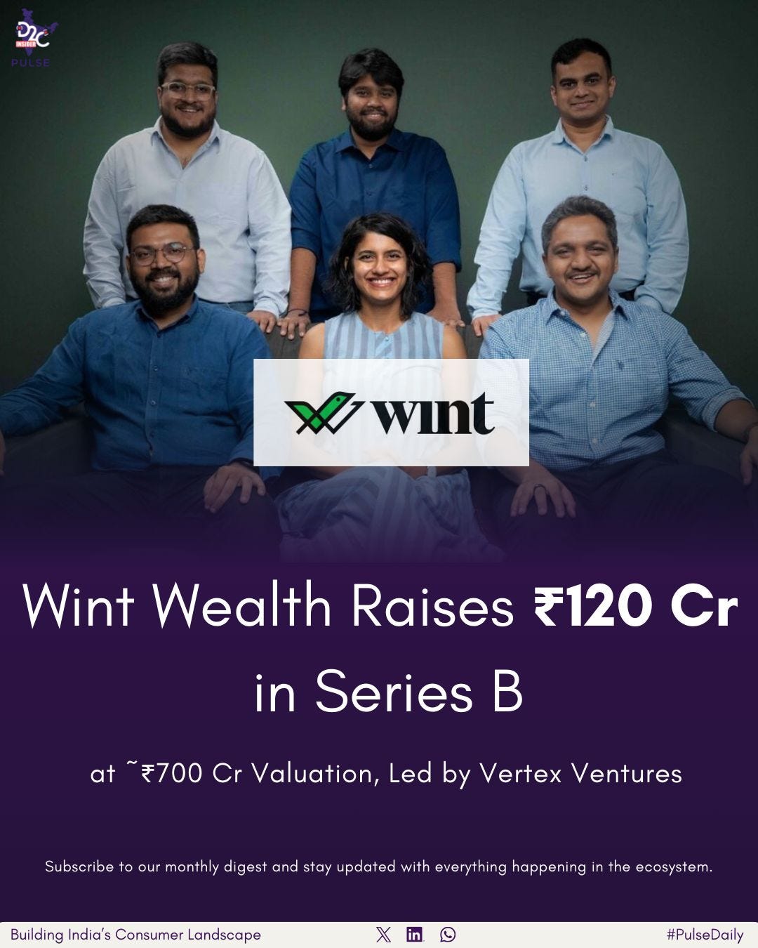 The wealth management platform, from Bengaluru, is getting ready to raise ₹120 crore (about $13.3 million) in a Series B funding round led by Vertex Ventures. This is its first big fundraising in over three and a half years. The round values Wint Wealth at around ₹700 crore ($80 million) after the money is added, which shows that investors are increasingly confident in D2C wealth platforms.