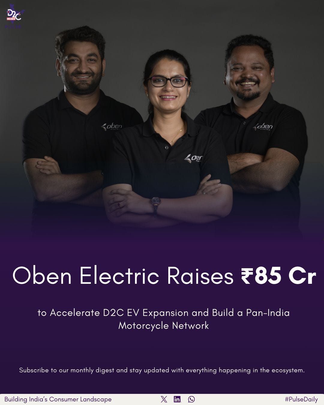 Oben Electric, an Indian electric motorcycle startup, has secured ₹85 crore (about $10 million) in a pre-Series B funding round. This is a key step for India’s quickly growing D2C scene.