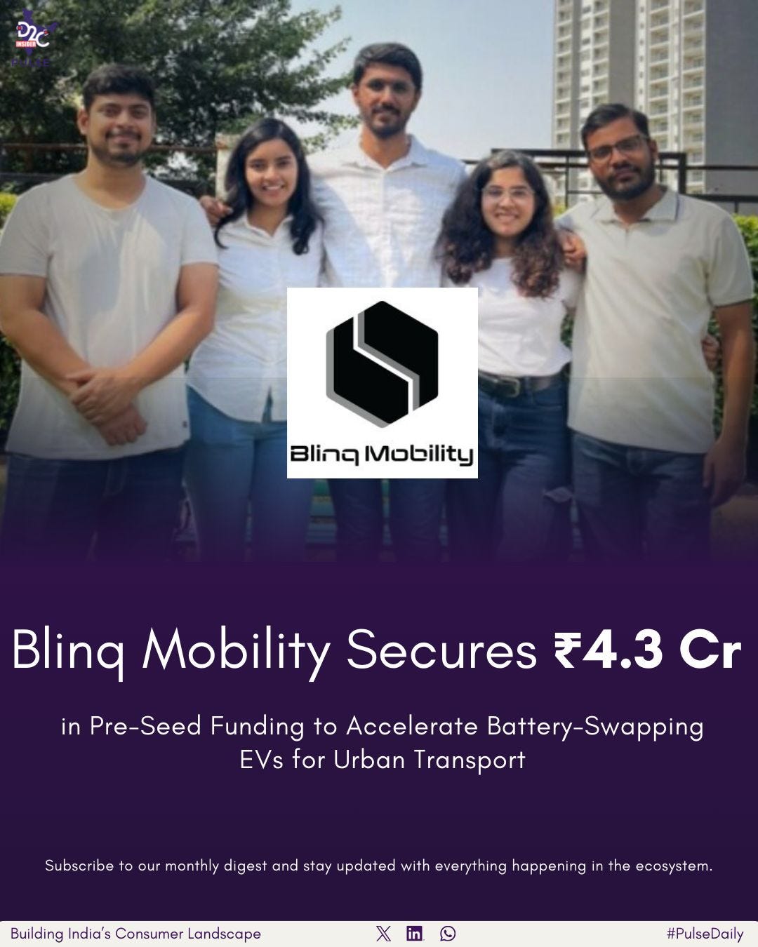 Blinq Mobility Secures ₹4.3 Cr in Pre-Seed Funding to Accelerate Battery-Swapping EVs for Urban Transport