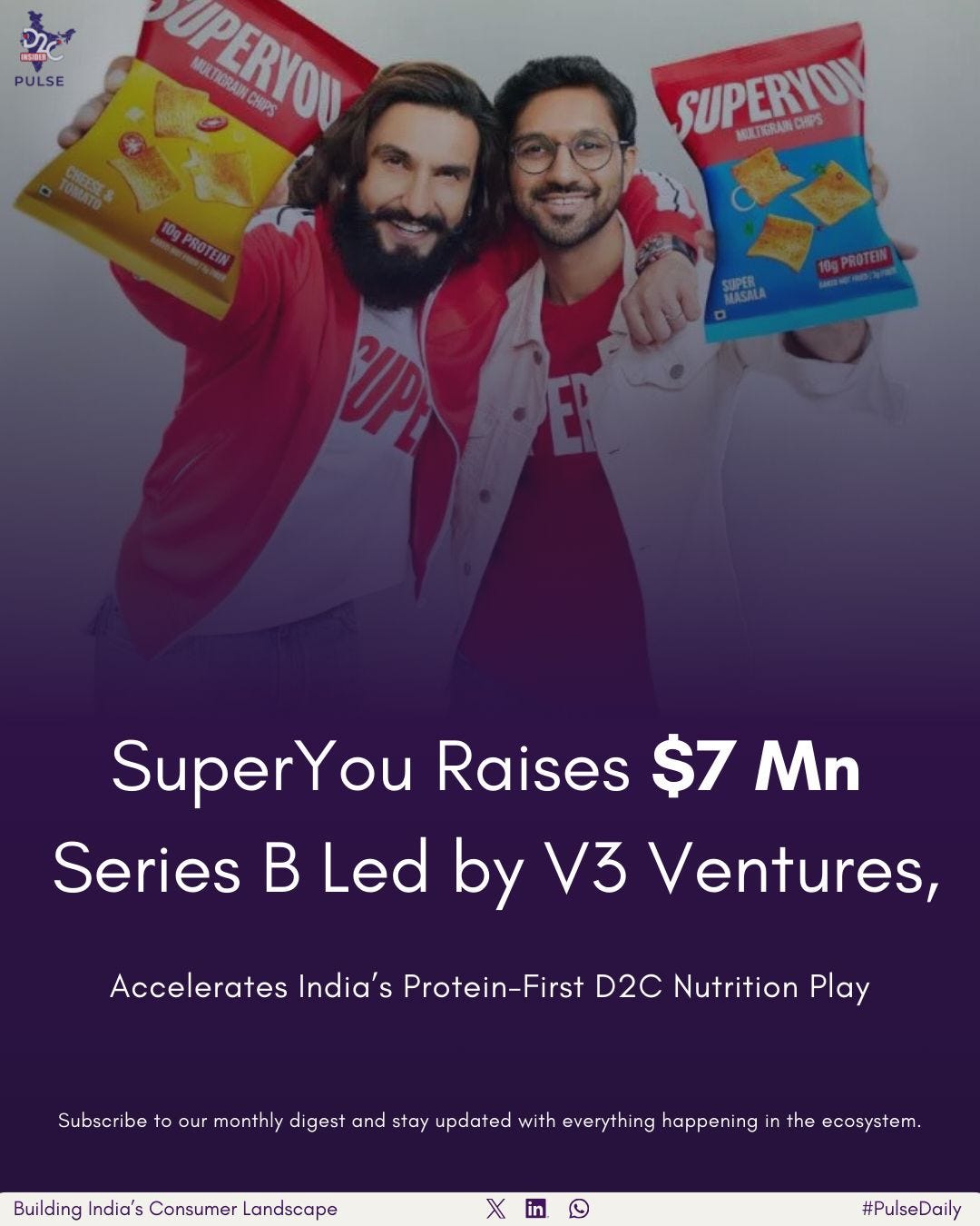 SuperYou, a celebrity-backed D2C protein brand, has secured ₹63 crore ($7 million) in Series B funding. V3 Ventures led the round, with participation from existing investors Rainmatter and Gruhas Collective Consumer Fund. This funding marks a key step for the young brand and shows growing investor confidence in India’s quickly changing D2C wellness and nutrition market.