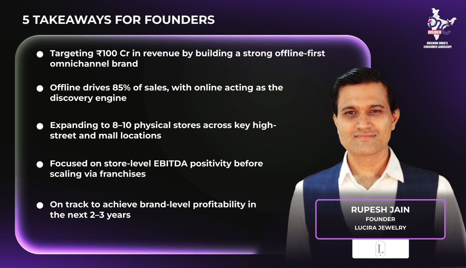 Each store will be about 800–1,000 sq. ft., costing around ₹60–70 lakh to set up. Lucira is currently running these stores themselves to maintain control and consistency. They aim for each store to be profitable within six to nine months. Their first store is already profitable, which reinforces their confidence in their offline retail strategy.
