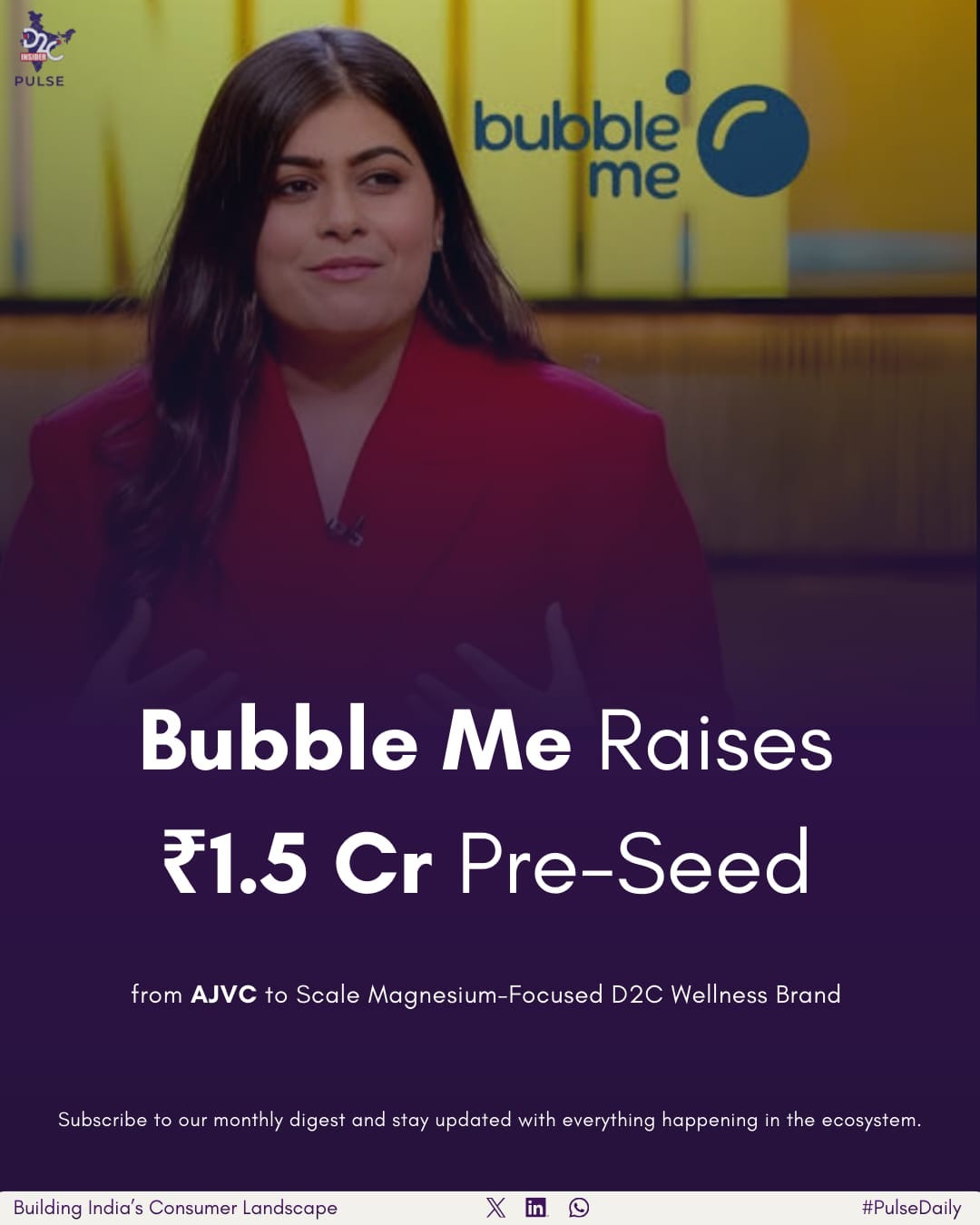 In the latest D2C news India spotlighting emerging wellness brands, Chandigarh-based startup Bubble Me has raised ₹1.5 crore in a pre-seed funding round led by AJVC, the early-stage investment firm founded by Aviral Bhatnagar. The development marks a notable addition to Indian D2C updates and reinforces growing investor appetite for niche, science-led Direct-to-consumer India brands within the expanding D2C ecosystem India.