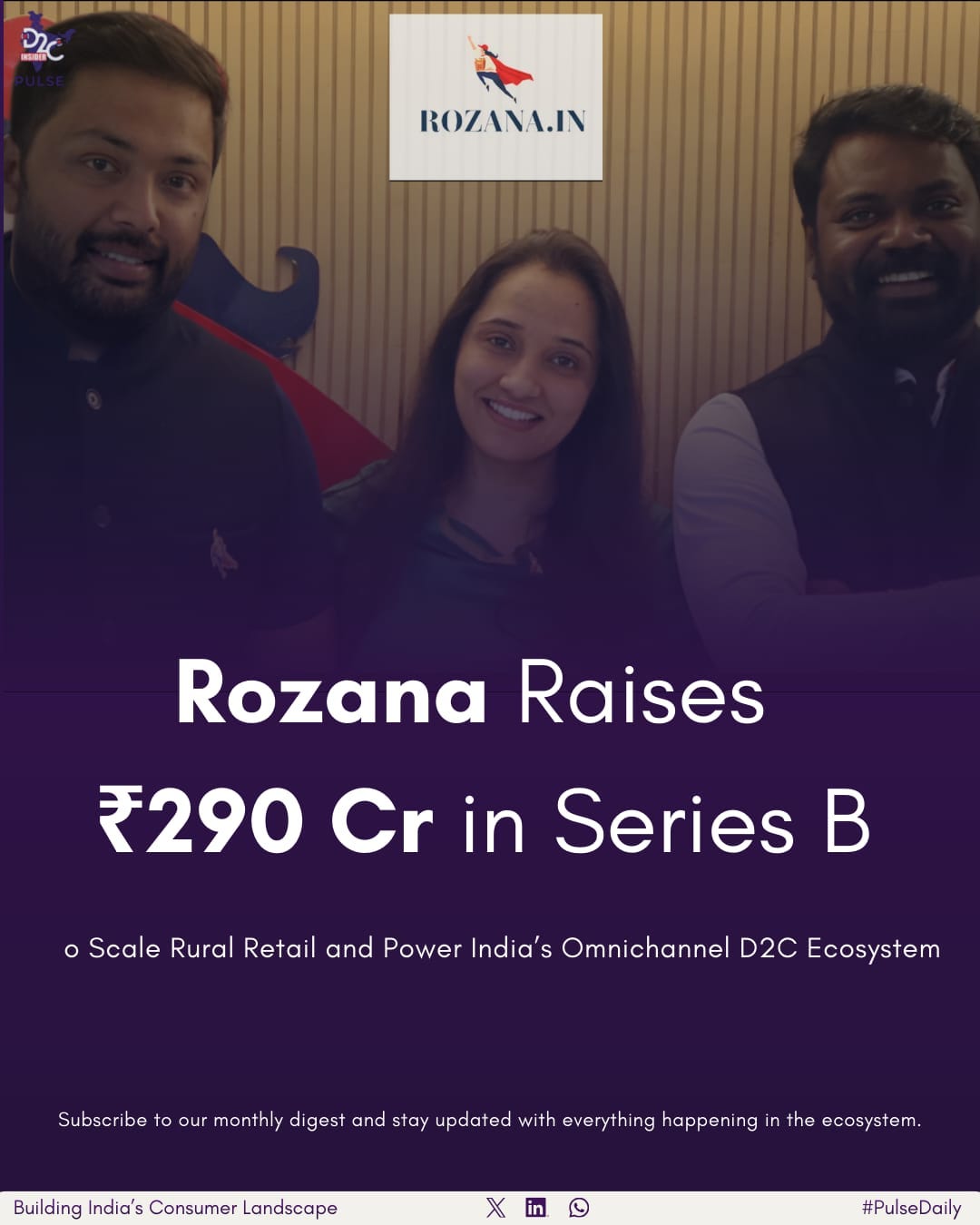 In a major development in D2C news India and the evolving Direct-to-consumer India landscape, rural-focused omnichannel retail platform Rozana has raised ₹290 crore in a Series B funding round led by Bertelsmann India Investments (BII). The round also saw participation from Fireside Ventures, US-based Spark Growth Ventures, Bikaji Family Office, FE Securities, and several prominent family offices, highlighting strong investor confidence in the company’s growth trajectory and the broader D2C ecosystem India.