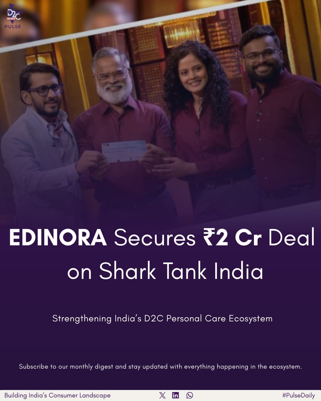 In a significant moment for D2C news India and the broader D2C ecosystem India, Kerala-based EDINORA Personal Care has emerged as one of the most differentiated D2C brands India to feature on Shark Tank India Season 5. For those tracking D2C daily news, D2C startup news, and Indian D2C updates, EDINORA’s funding milestone highlights how innovation-led D2C personal care brands are reshaping Direct-to-consumer India.