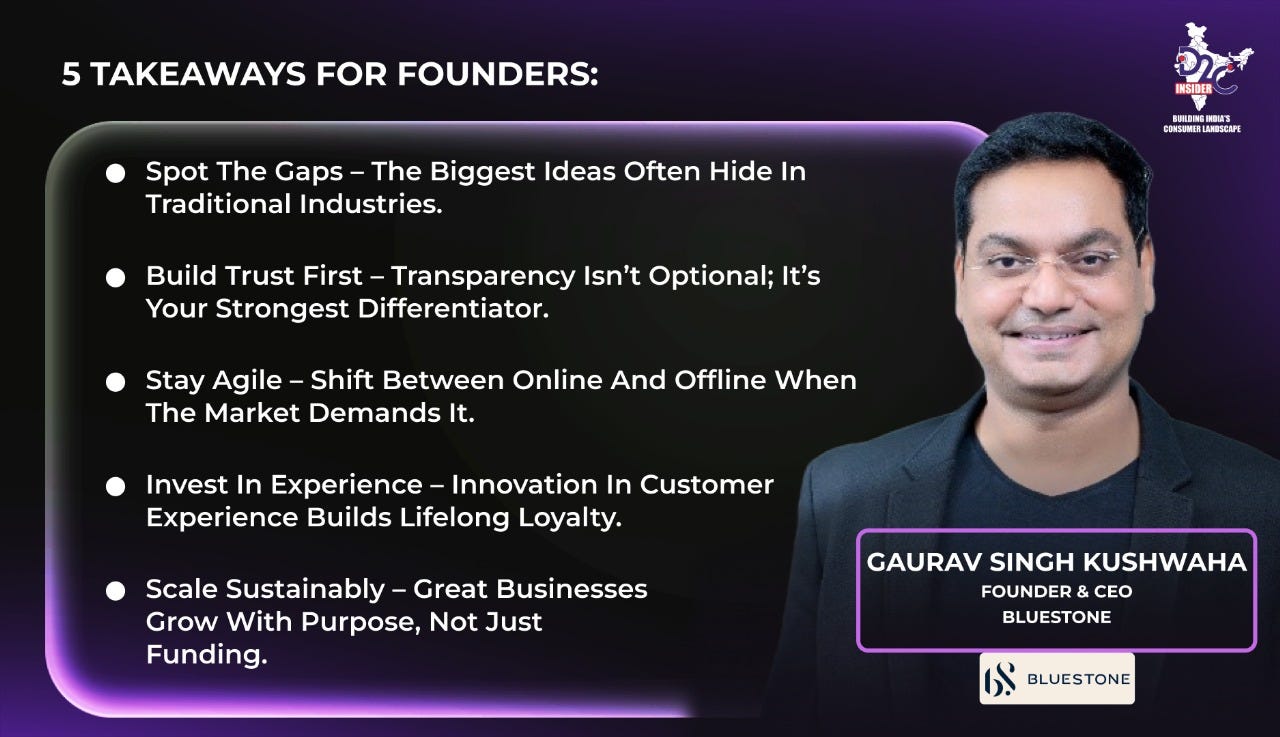 With its made-to-order, inventory-light model, BlueStone scaled rapidly — raising over ₹60 Cr from Accel and Kalaari, then ₹200 Cr from Accel and Iron Pillar, and later ₹550 Cr led by InfoEdge. But Gaurav didn’t stop at digital dominance — he took BlueStone offline, opening physical stores across India and creating an omnichannel powerhouse.