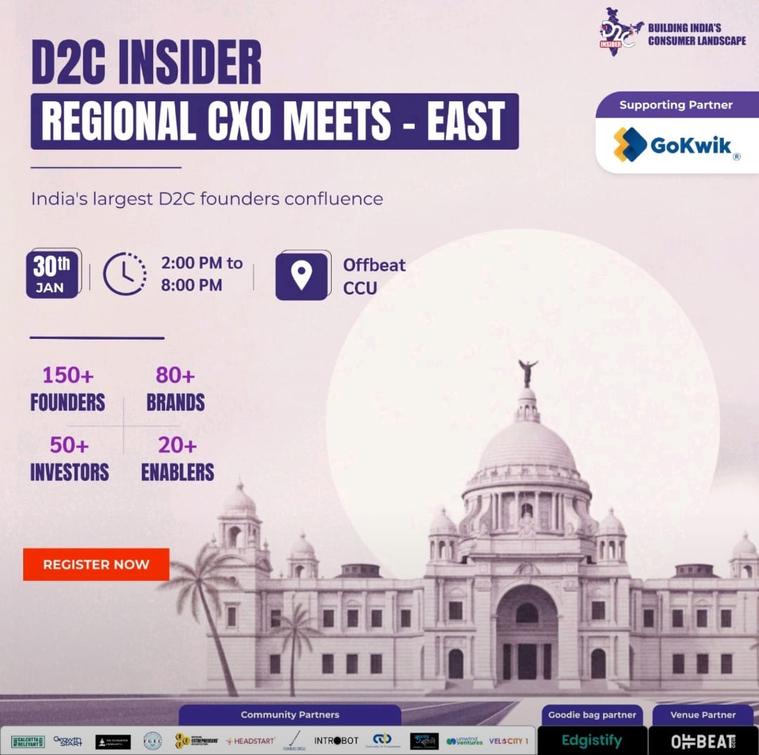 On 30th January, Kolkata hosts the D2C Insider Regional CXO Meet – East—bringing together founders, operators, investors, and enablers for an afternoon of real conversations and meaningful connections.