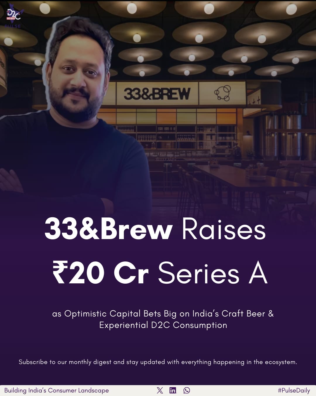 It looks like more and more Indian consumers want cool experiences, and the latest news from the D2C world shows it. 33&Brew, a brewery that mixes craft beer with old-school music, just scored ₹20 crore ($2.2 million) in funding led by Optimistic Capital. This is big not just for 33&Brew, but for the whole craft beer scene in India, where people want experiences and cool brands.