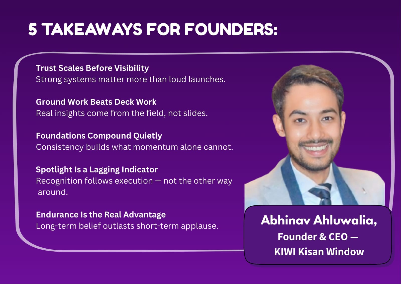 The years that followed weren’t glamorous. From 2017 to 2019, Abhinav spent time in villages, on long drives, and in conversations that never made it into decks or presentations. The work wasn’t about visibility — it was about building reliability. Systems that actually worked for Indian farmers, on Indian soil.