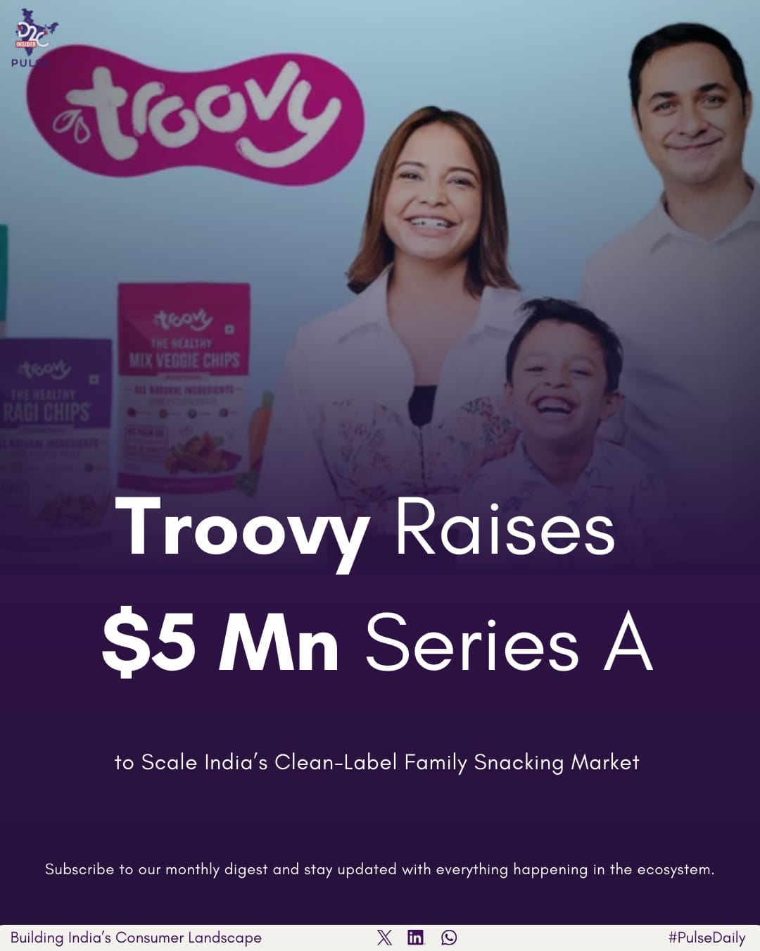 India’s clean-label snacking space continues to attract strong investor interest as Troovy, a fast-growing direct-to-consumer (D2C) food brand, has raised $5 million in a Series A funding round led by Fireside Ventures and Sharrp Ventures. The round also saw participation from existing investors Spring Marketing Capital and Veltis Capital, reinforcing confidence in Troovy’s brand-led growth journey.