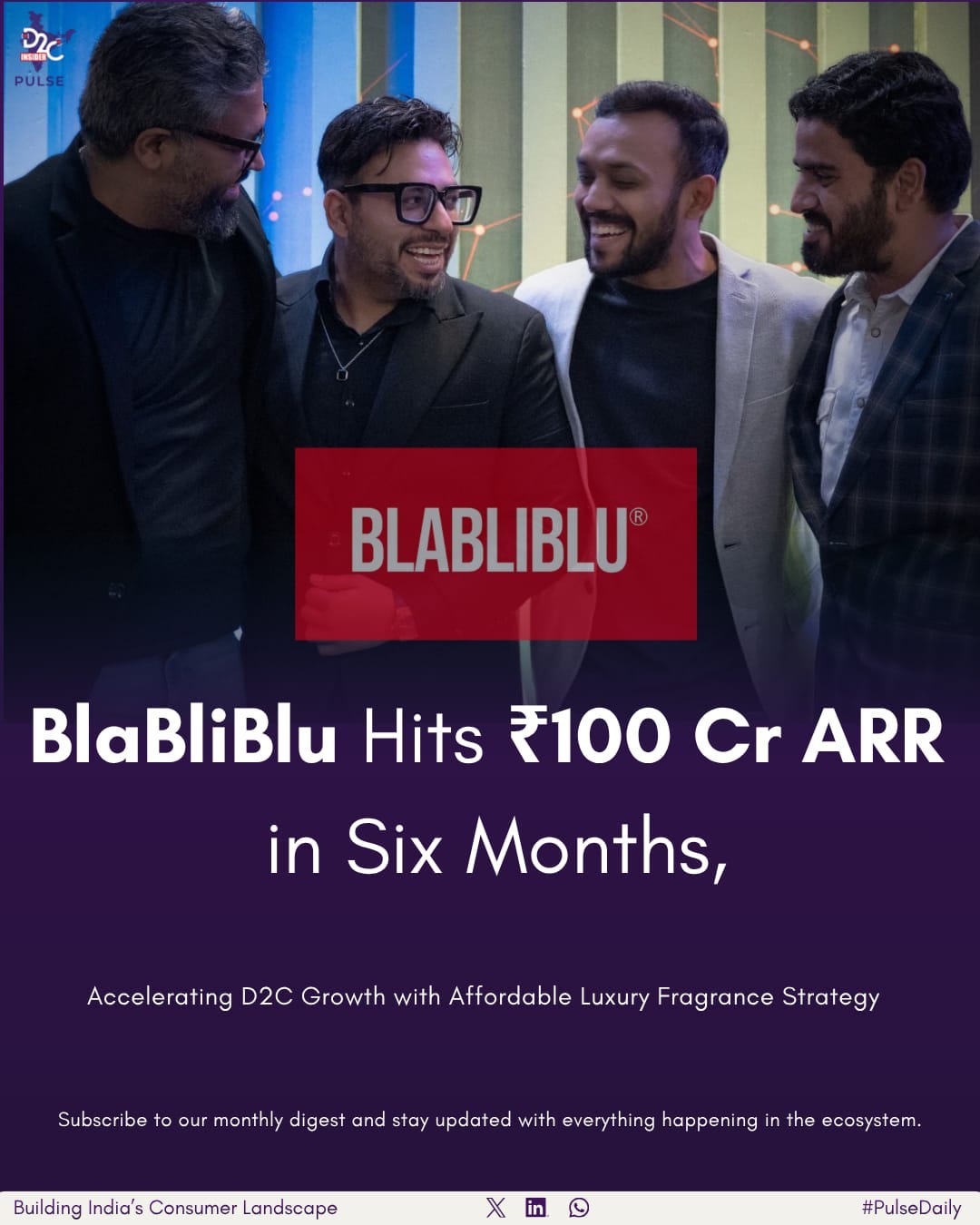 3. BlaBliBlu hits ₹100 crore ARR in six months with ₹8 crore monthly revenue, scaling fast through its affordable luxury fragrance D2C strategy.