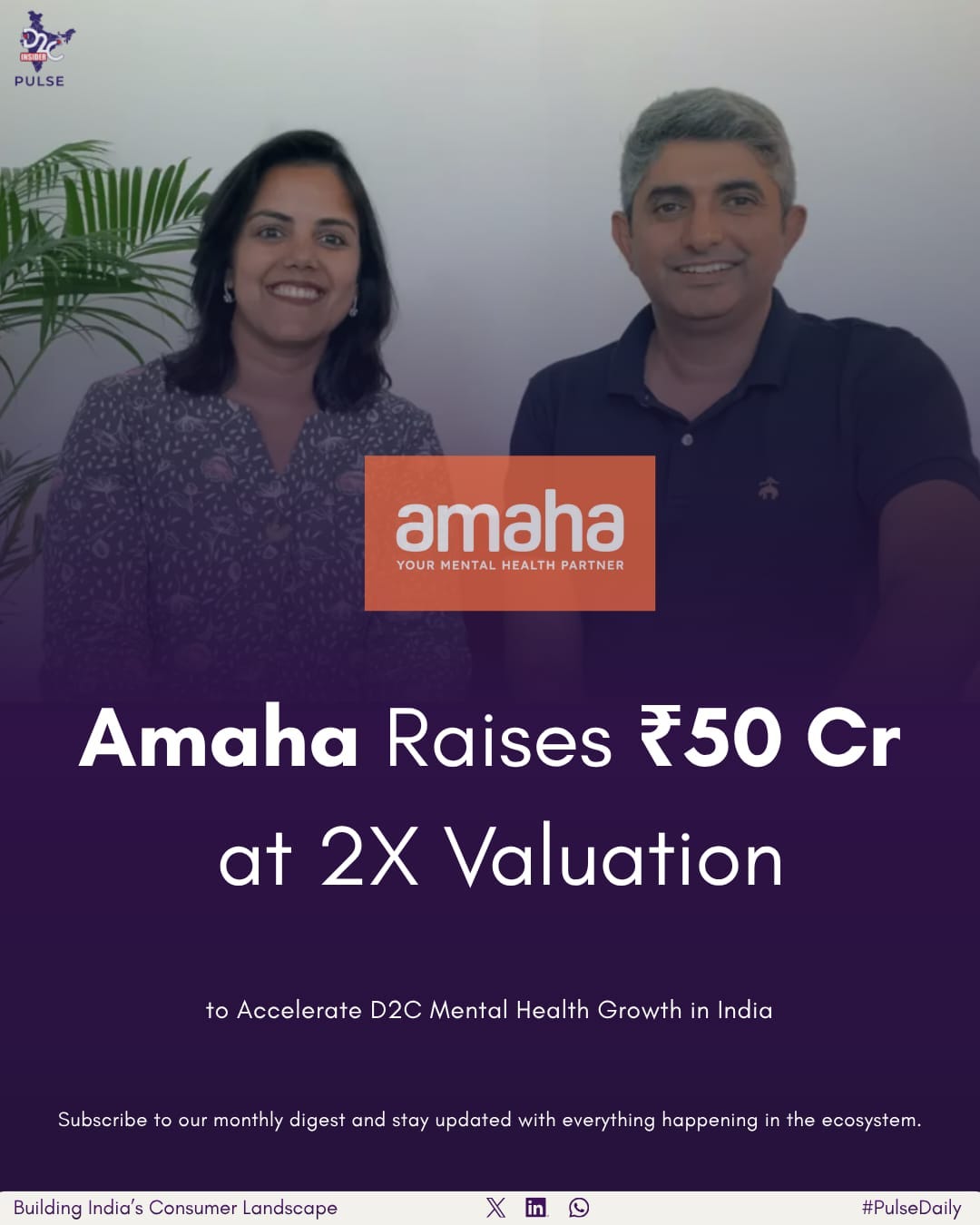 2. Amaha raises ₹50 crore at a ₹300 crore valuation, nearly doubling its value as it scales rapidly in India’s D2C mental health and wellness ecosystem.