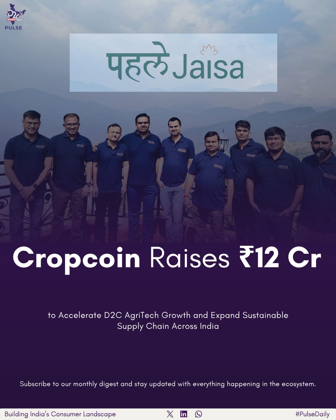 2. Cropcoin secures ₹12 crore in pre-Series A funding to expand its D2C agritech platform, driving sustainable supply chains and farmer network growth.