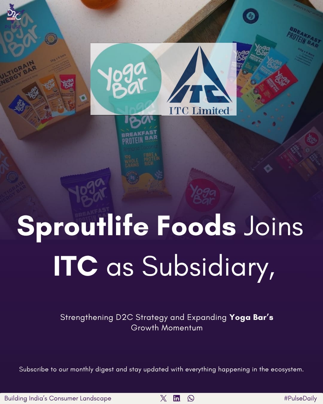 3. ITC made Sproutlife Foods (Yoga Bar) its subsidiary, strengthening its D2C food and wellness presence with strong growth momentum.
