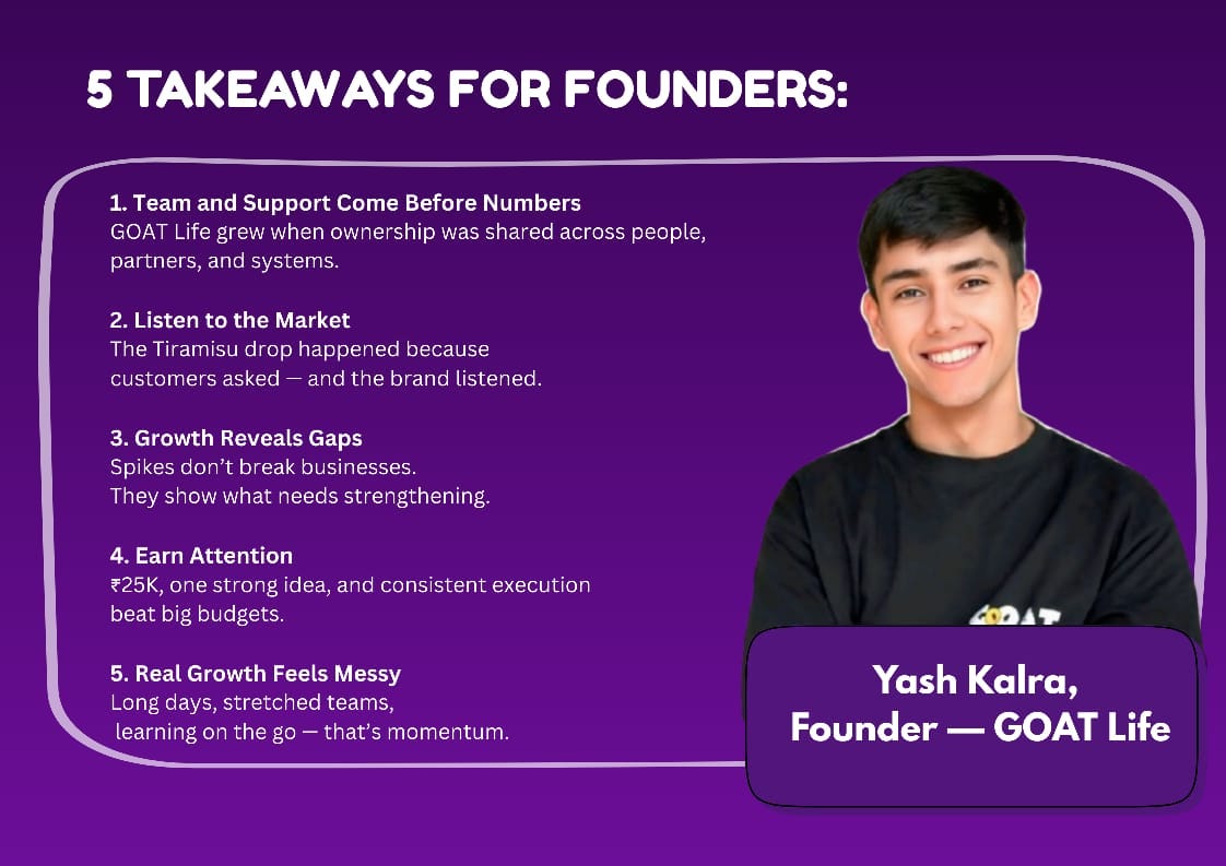GOAT Life crossed its entire previous month’s website revenue in just 2 days. October’s cash stress turned into November profitability. By year-end, the brand had served 2 lakh+ packets, closed a $200K addon round, and entered 2026 with momentum — and healthy fear.