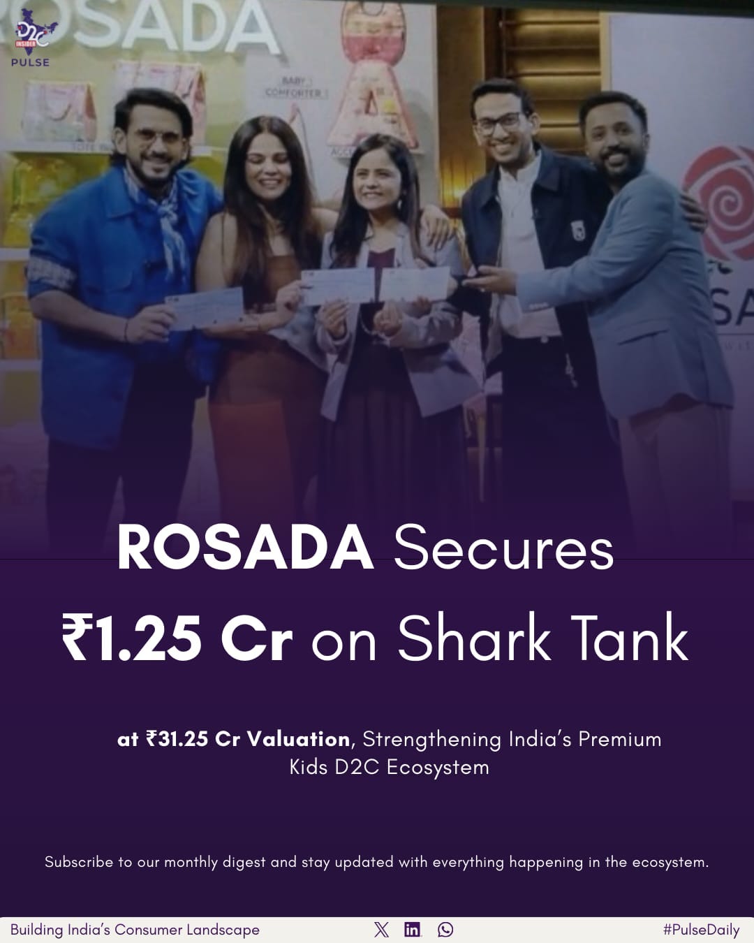 In one of the notable moments in recent D2C news India and D2C startup news, Kolkata-based ROSADA – Tots Luxury Brand appeared on Shark Tank India Season 5 and secured a deal that reinforces growing investor confidence in India’s premium kids and gifting segment within the D2C ecosystem India.