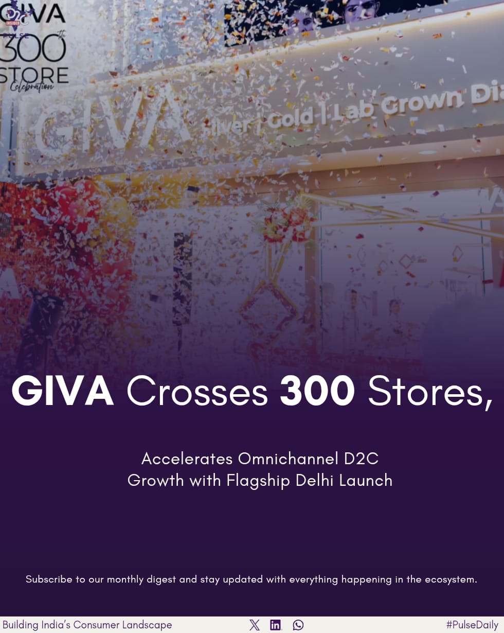 2. GIVA crosses 300 stores with its flagship Delhi launch, accelerating omnichannel D2C growth. With strong retail expansion plans targeting 800–1,000 stores and a balanced online-offline strategy, the brand is scaling rapidly, emerging as a leading player in India’s premium jewellery and D2C fashion ecosystem.