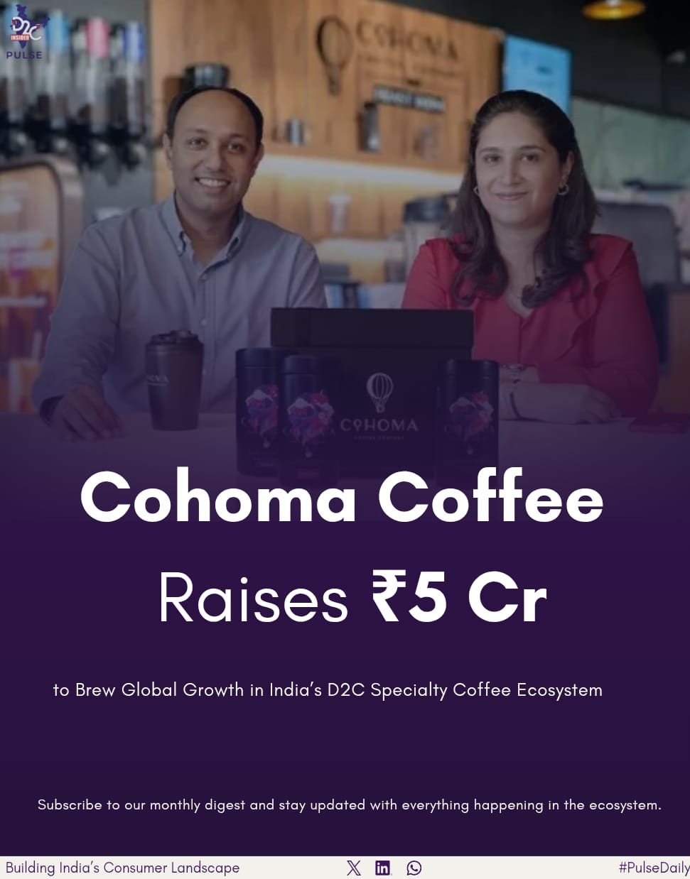 1.Cohoma Coffee raises ₹5 Cr in a seed round led by Inflection Point Ventures, with Swishin VC participation. With a vertically integrated model, strong omnichannel presence, and 90% repeat customers, the brand is scaling rapidly, expanding globally, and emerging as a premium player in India’s D2C coffee ecosystem.