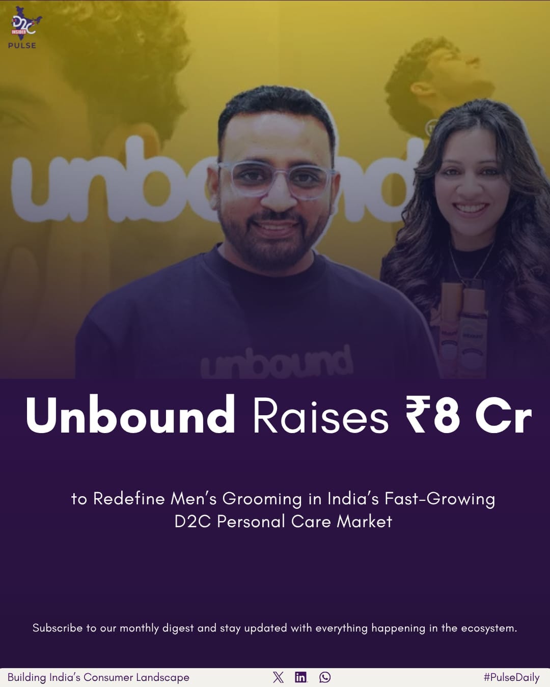 3. Unbound raises ₹8 Cr led by Fireside Ventures to launch its performance-led men’s grooming range. Focused on multi-functional, high-efficacy products, the brand is set to disrupt India’s D2C personal care space, tapping into evolving consumer needs and emerging as a strong player in the growing D2C ecosystem.