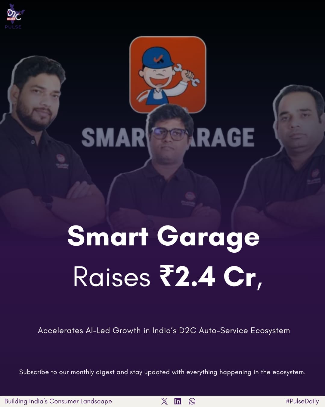 2. Smart Garage raises ₹2.4 Cr in Pre-Series A to scale its AI-driven auto-service platform. With plans to expand its network, enhance technology, and target ₹80 Cr revenue by FY27, the startup is emerging as a strong player in India’s evolving, tech-led D2C ecosystem.