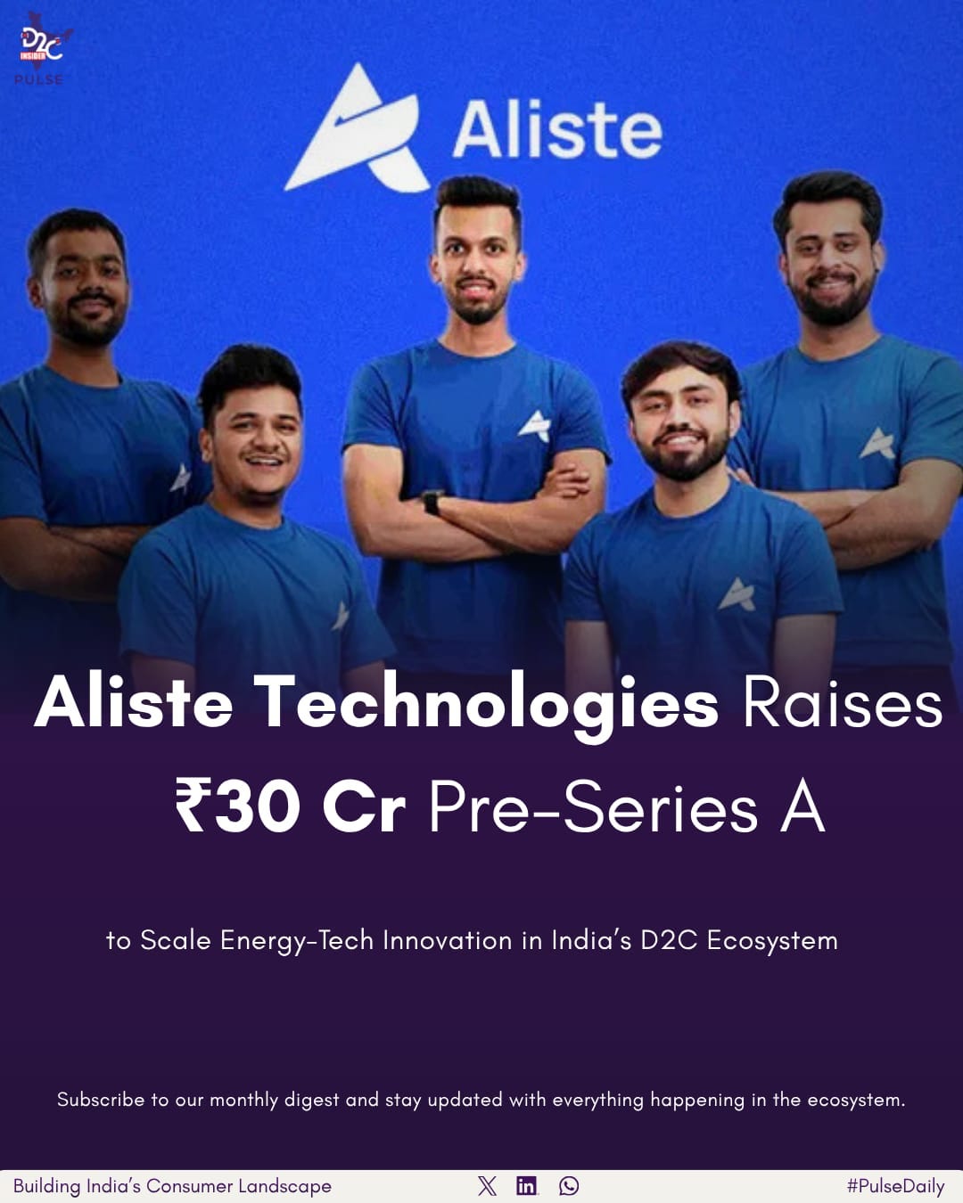 1. Aliste Technologies raises ₹30 Cr in a pre-Series A round led by Big Global JSC, with participation from YourNest VC and HBeon Labs. With strong traction, sustainability impact, and growing enterprise adoption, the startup is emerging as a key player in India’s evolving D2C ecosystem and energy-tech innovation space.