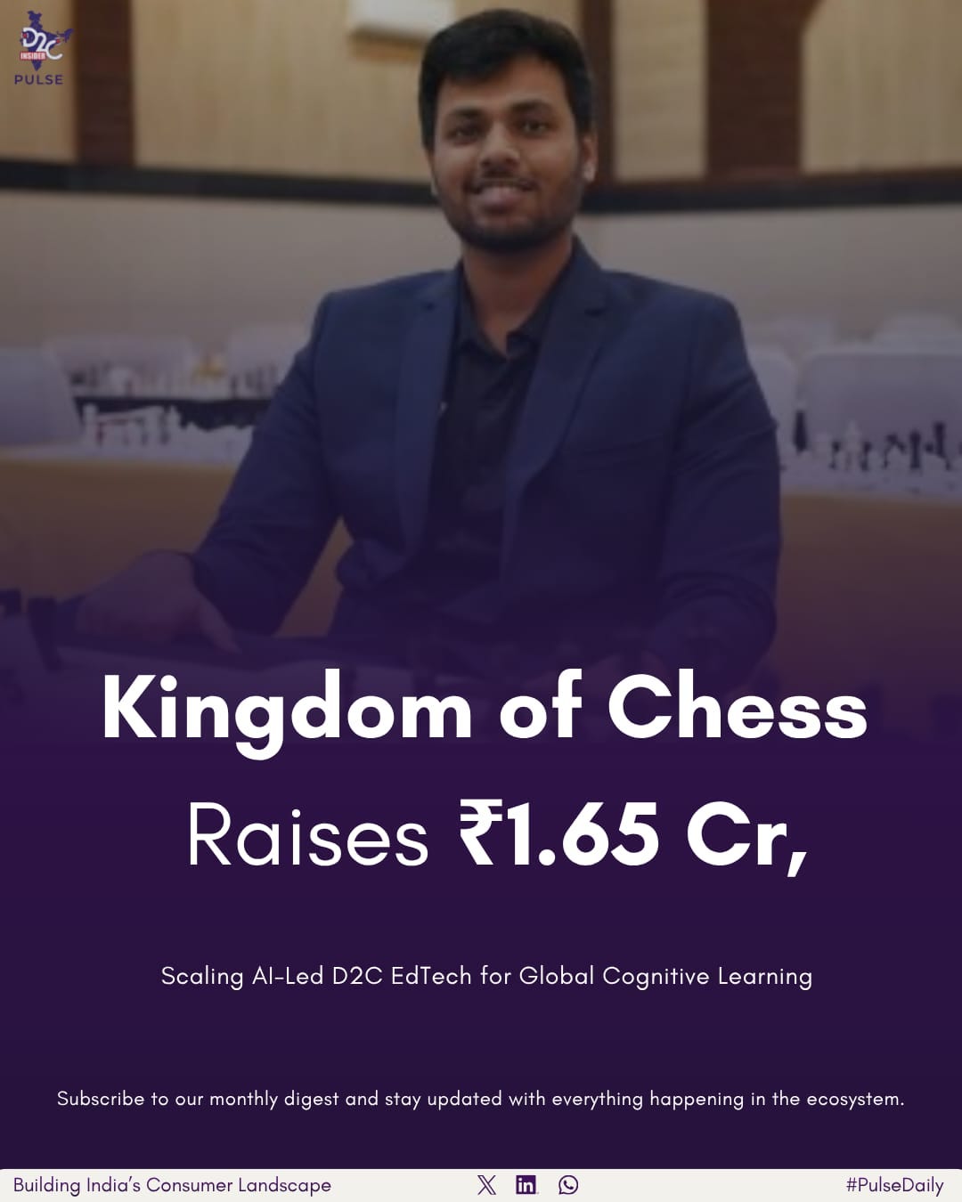 3. Kingdom of Chess raises ₹1.65 Cr to scale its AI-powered D2C learning platform. With 10,000+ students across 30+ countries and strong revenue growth, the brand is expanding globally, combining AI, coaching, and gamification to emerge as a leading player in India’s fast-growing D2C EdTech ecosystem.