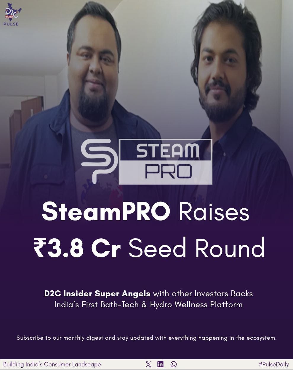 SteamPRO Raises ₹3.8 Cr Seed Round; D2C Insider Super Angels Backs India’s First Bath-Tech & Hydro Wellness Platform