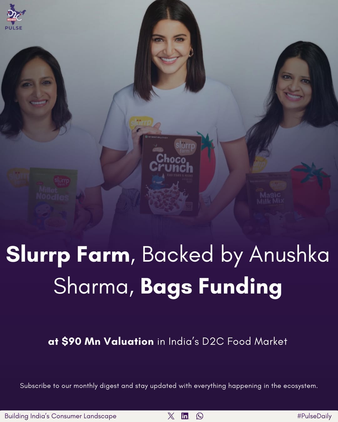 Slurrp Farm, Backed by Anushka Sharma, Bags Funding at $90 Mn Valuation in India’s D2C Food Market